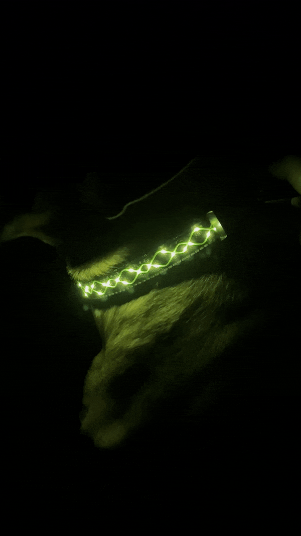Après beaucoup d'essais de colliers lumineux qui étaient soient trop fragiles, pas waterproof ou pas assez visibles, je suis très content avec ce pack ! La broderie lumineuse est jolie, et surtout la luminosité est intense pour être vue de loin, l'autonomie est top.